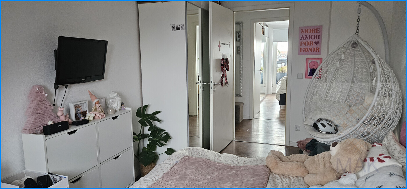 Mit insgesamt 3 Zimmern ist hier ausreichend Platz für vielfältige Gestaltungsmöglichkeiten. Das Herzstück der Wohnung bildet die offene Einbauküche, die sich perfekt in den Wohnbereich integriert und ideal für gemütliche Kochabende oder geselliges Beisammensein ist. Sommerabende kann man romantisch bei einem Glas Wein auf der geräumigen Süd-West-Dachterrasse beschließen.
