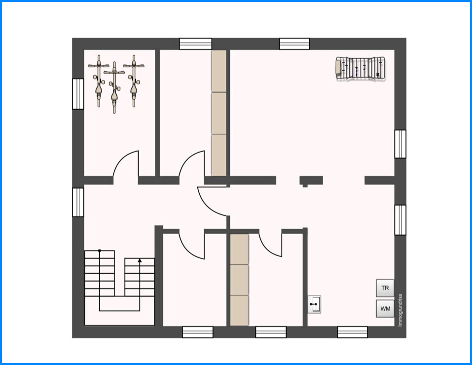 Das Dachgeschoss erweitert den Wohnkomfort mit fünf weiteren Räumen. Dieser Bereich wird von den Mietern des Erdgeschosses allein genutzt.