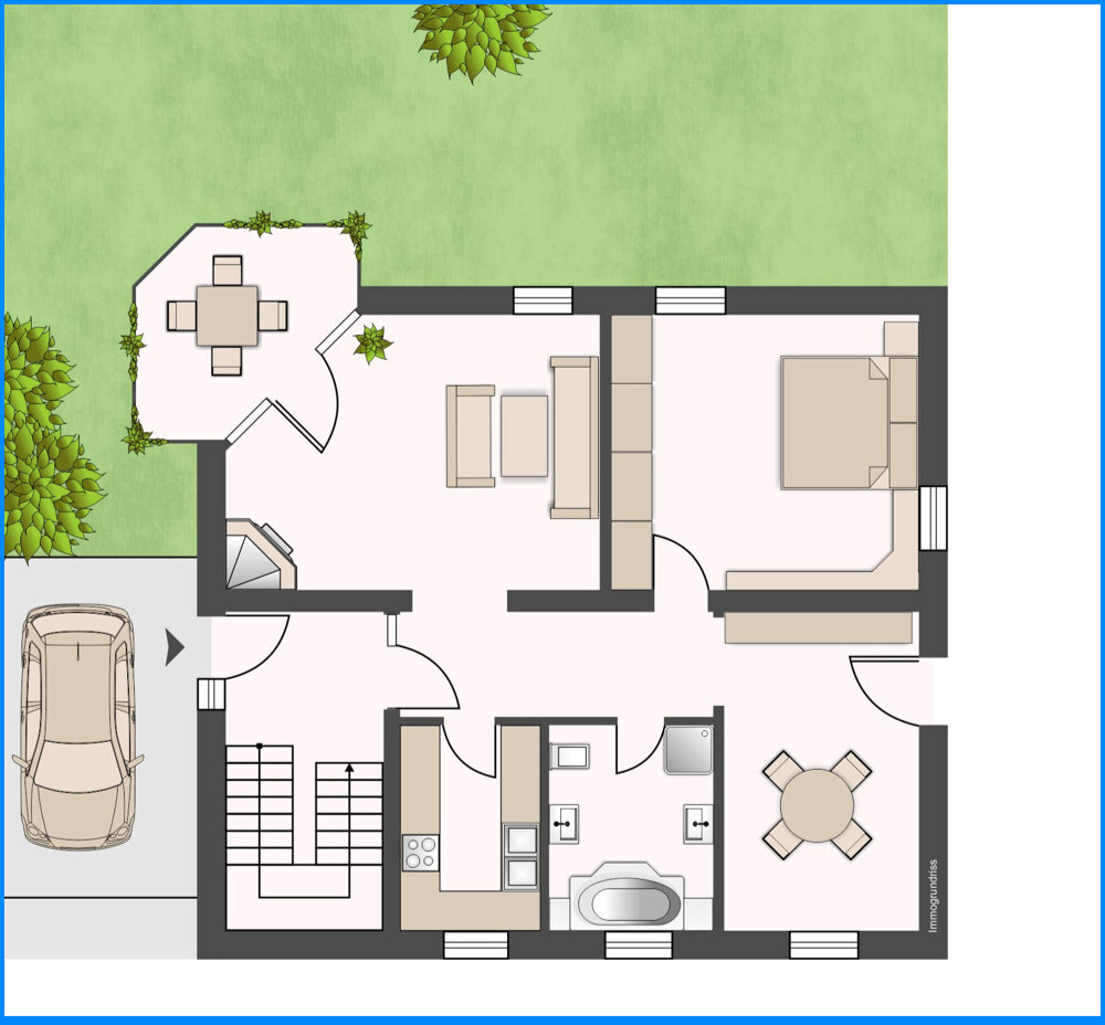 Die dargestellten Grundrisse dienen nur der Orientierung und sind nicht maßstabsgerecht. Das dargestellte Carport dient lediglich als Beispiel.