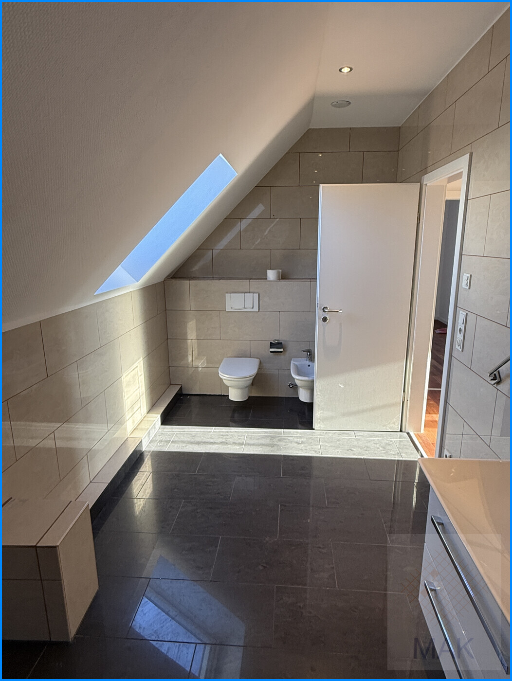 Hier befindet sich eine große "Wohnung", ähnlich einem normalen Einfamilienhaus. Dieses Haus verfügt über ein großes Wohn-/Esszimmer mit offener Küche und im Obergeschoss über 3 Schlafzimmer, ein großes Bad und einen großen Balkon.