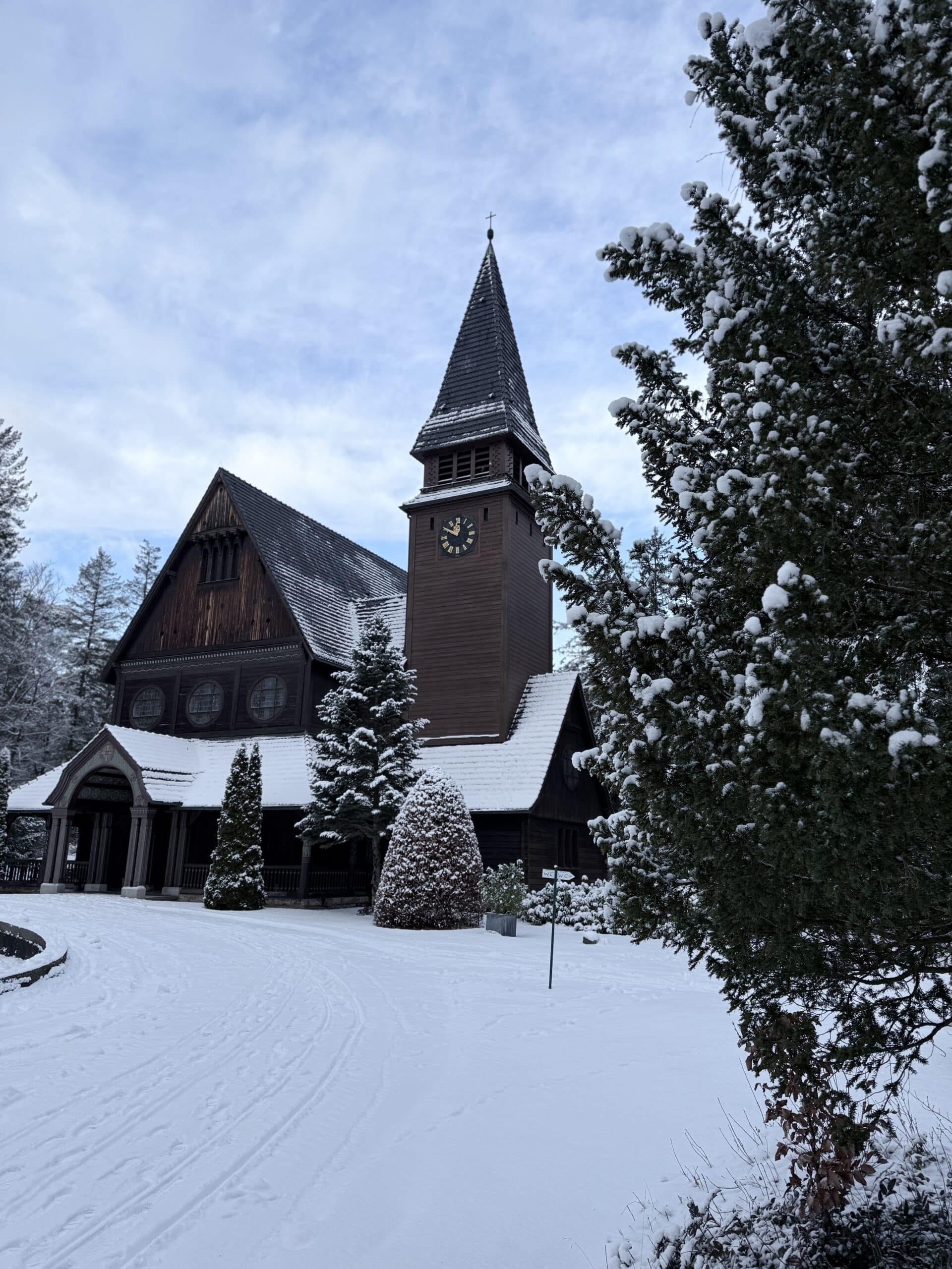 Architektonisch besonders bemerkenswert ist die hölzerne Friedhofskapelle im Stil norwegischer Stabkirchen.